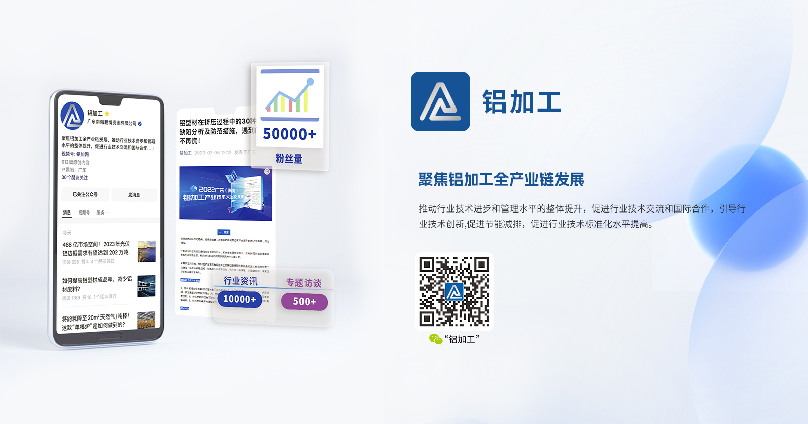 鋁加網(wǎng)(www.albiz.cn)是聞名鋁加工行業(yè)的垂直門戶網(wǎng)站,云聚鋁業(yè)新生態(tài),構(gòu)建鋁業(yè)新場景,以albiz.cn 網(wǎng)站為核心,以移動(dòng)云端、鋁加工微信、鋁加網(wǎng)視頻號(hào)、《鋁型材專刊》和《鋁世界》雜志為載體,成為了鋁加工行業(yè)資訊和精準(zhǔn)傳播的首選傳媒。鋁加網(wǎng),采集和發(fā)布全行業(yè)信息資訊,提供線上展覽、在線直播、短視頻、品牌策劃、品牌運(yùn)營、品牌傳播等全方位的專業(yè)服務(wù)。
